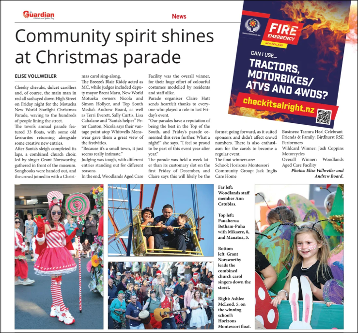 NEWSPAPER ARTICLE: THE GUARDIAN MOTUEKA AND GOLDEN BAY, NEW ZEALAND, DECEMBER 2025